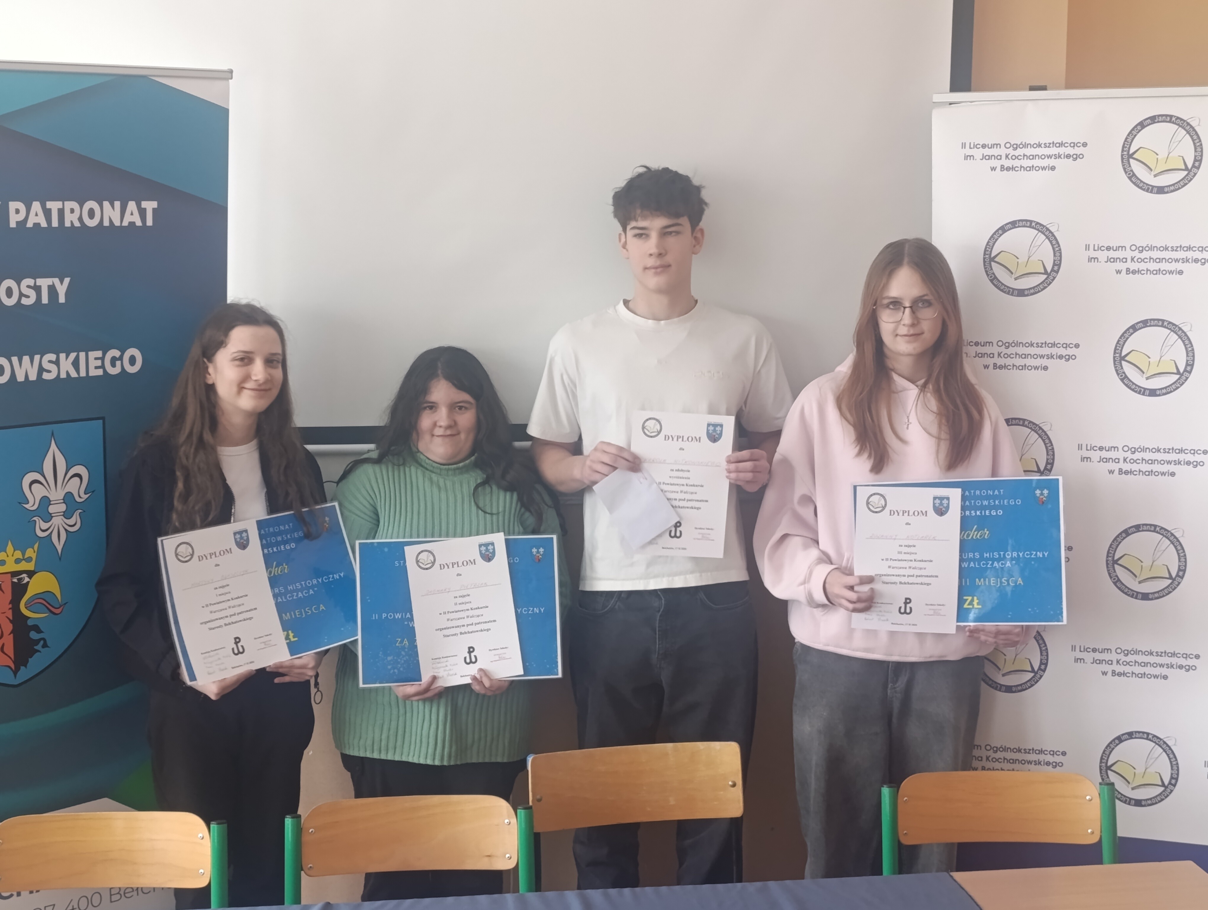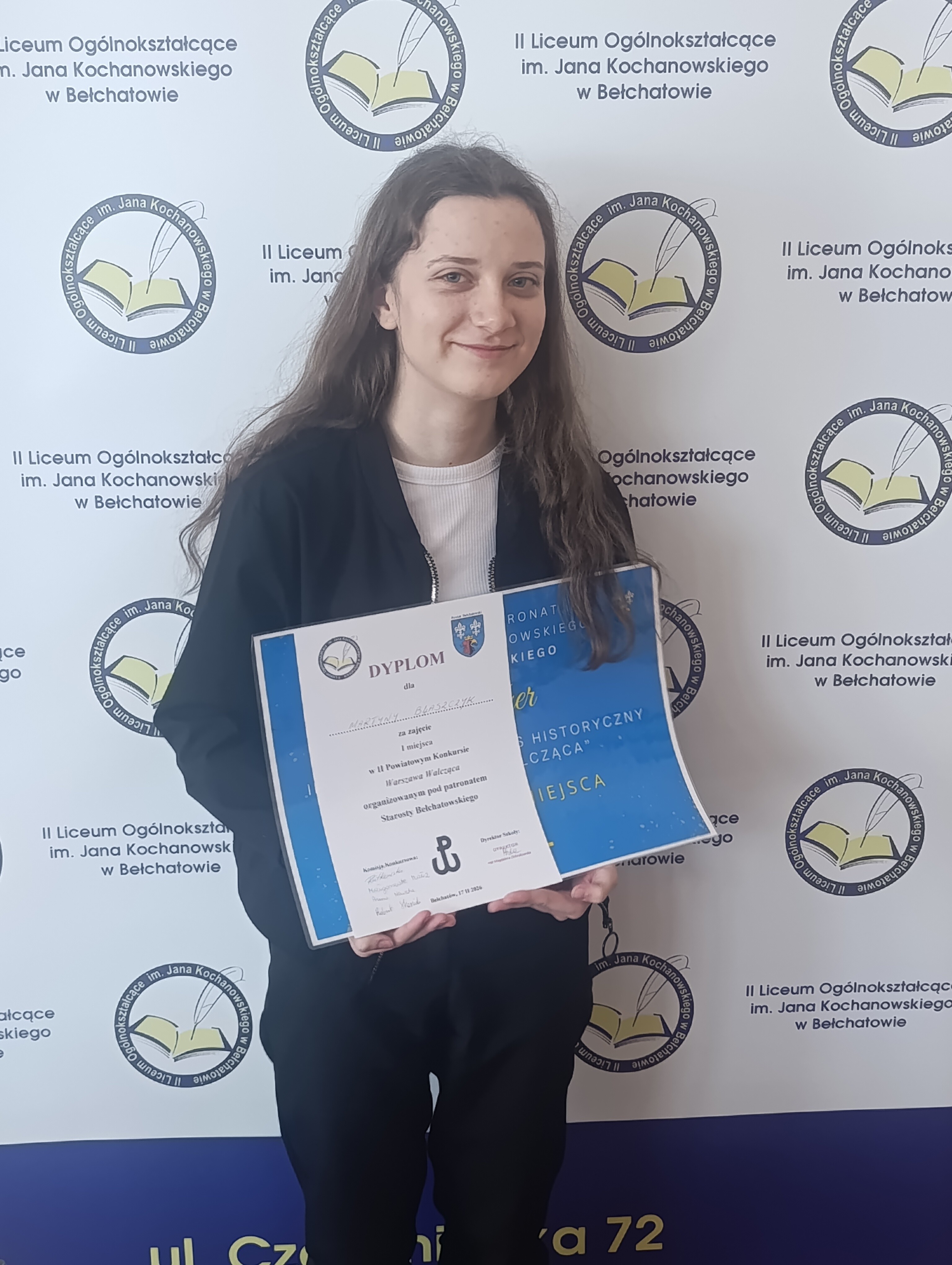 17 lutego 2026 r. w II LO im. Jana Kochanowskiego w Bełchatowie odbyła się 2. edycja powiatowego konkursu historycznego „Warszawa Walcząca”. W rywalizacji wzięli udział uczniowie z kilku szkół, w tym nasi reprezentanci – Tymon Drozdek (2F) i Martyna Błaszczyk (3H). W klasyfikacji końcowej zwyciężyła Martyna, osiągając 39 z 40 możliwych do zdobycia punktów i tym samym zajęła I miejsce w konkursie. Gratulujemy!