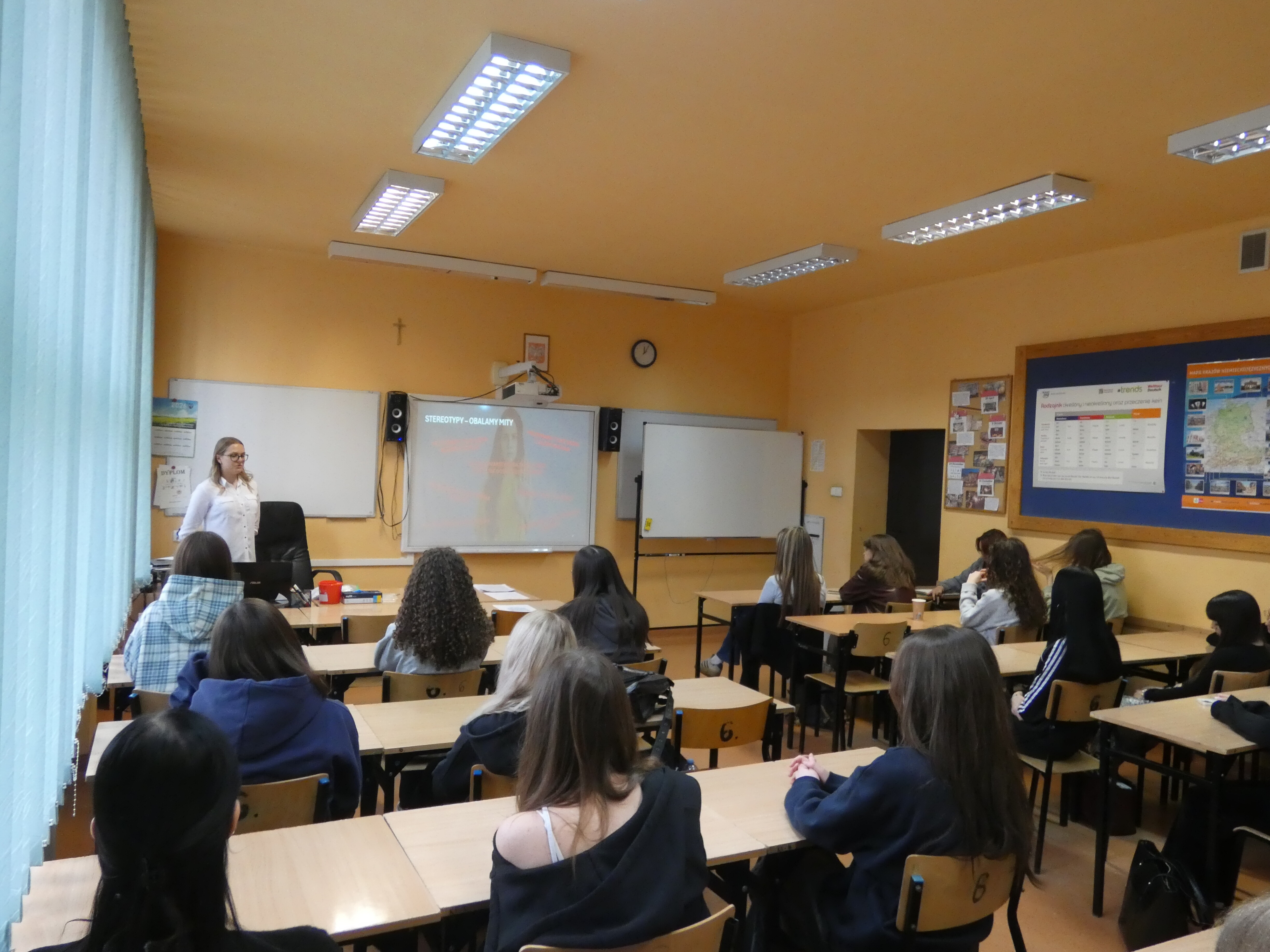 Uczniowie mieli okazję obejrzeć ciekawą prezentację na temat studiów na tym kierunku oraz możliwości studiowania na uczelni medycznej. Bardzo dziękujemy pani Patrycji za odwiedzenie murów szkoły oraz za informacje z tzw. "pierwszej ręki".